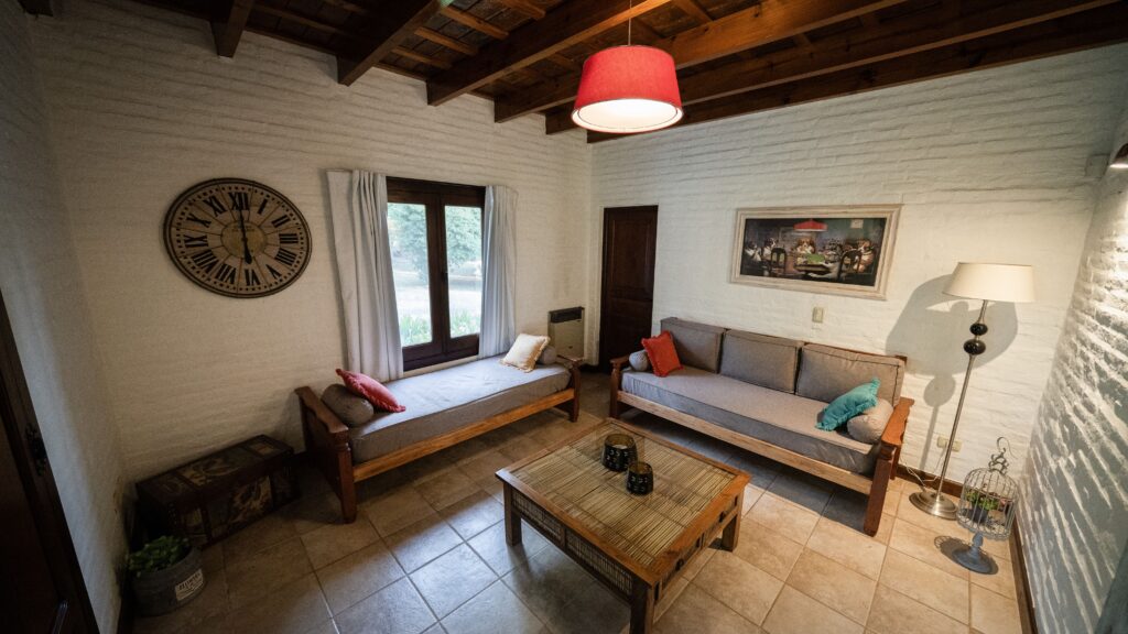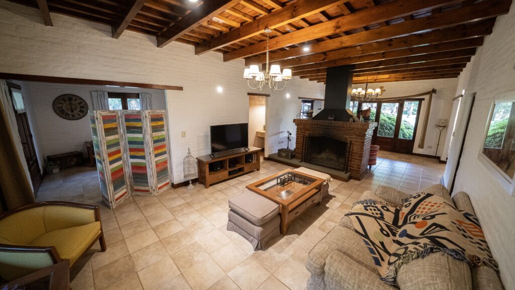 Descubre la comodidad de nuestros tres dormitorios, cada uno diseñado para alojar a dos personas, con baño privado y ducha en cada uno de ellos. Además, tiene un sector con dos camas mas, podrás disfrutar de un comedor luminoso, una acogedora sala de estar con chimenea y televisión, y una amplia cocina equipada con todos los electrodomésticos necesarios para tu día a día.