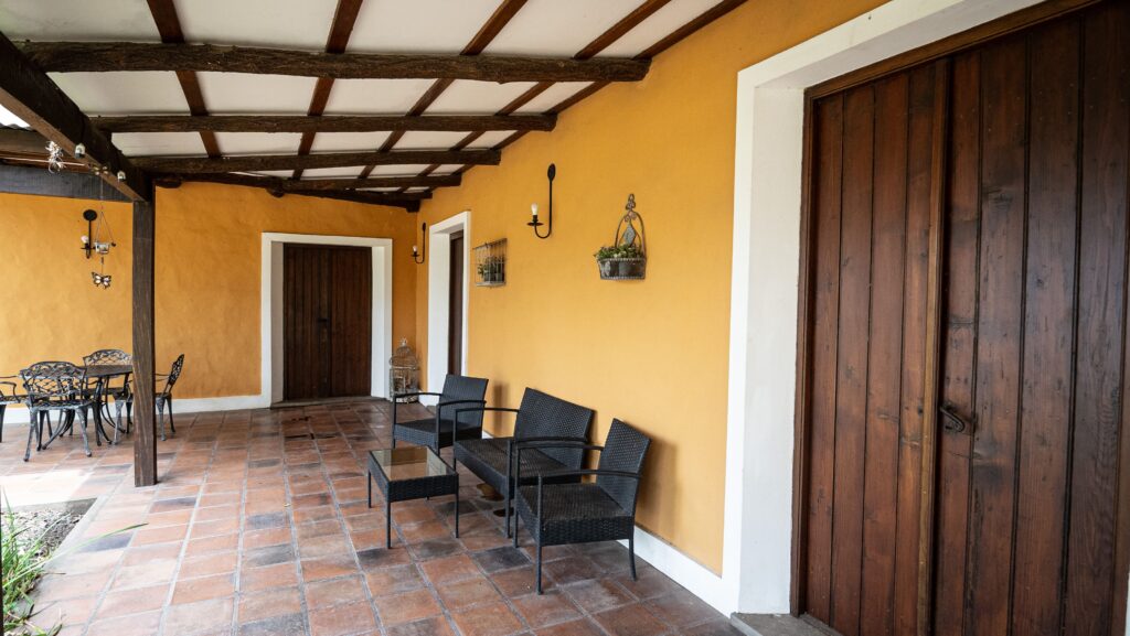 Con casi cien años de antigüedad, esta casa ha sido completamente renovada para asegurar el máximo confort de nuestros huéspedes sin perder su encantador estilo campestre. Las paredes de ladrillo y barro impermeabilizadas se combinan con amplias galerías que invitan a disfrutar de la naturaleza y la tranquilidad del paisaje circundante.